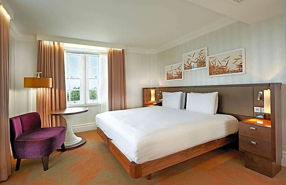 Large room facing the park, LED HDTV, Nespresso machine, mini-fridge, air conditioning Indulge in this inviting and luxurious guest room, featuring comfortable and modern decor with a classic twist and upgraded amenities. Ideal for a longer breaks and special occasions. Special touches include fluffy bathrobes and slippers, extra bathroom amenities and a Nespresso coffee maker. Work in comfort from the armchair using standard WiFi access or recline on the king-sized Hilton Serenity bed to watch the 42-inch LED TV. The elegant bathroom offers a spacious walk-in rain shower or combined bath and shower. Some rooms can be prepared with twin beds if required - please advise us in advance. If you have any specific preference, please let us know at the time of booking (subject to availability). Sleep 2 adults. Room size ranges from 14.7 sq. m. to 27 sq. m. (the average is 18.7 sq. m.).
